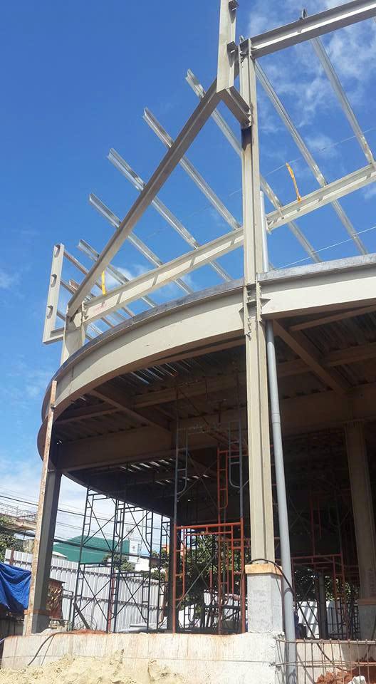 Nhà tiền chế. Nhà tiền chế đẹp. Mẫu nhà tiền chế. Nhà thép tiền chế. NHÀ HÀNG HẢI SẢN HƯƠNG QUÊ. CHỦ ĐẦU TƯ: ANH LONG. ĐỊA ĐIỂM XD: HUYỆN NÚI THÀNH - TỈNH QUẢNG NAM. THÁNG 05/2018Nhà hàng Hương Quê có kết cấu chính là khung nhà thép tiền chế. Là mẫu nhà tiền chế dân dụng đẹp, mẫu nhà tiền chế 3 tầng, nhà thép tiền chế 3 tầng, nhà thép tiền chế dân dụng 3 tầng. Sàn lầu 1, lầu 2 được cấu tạo bởi hệ dầm thép và xà gồ thép, tiếp theo trải tole sàn dày 6 zem, trải lưới sắt 6@ 150 và đổ bê tông đá 1x2 mác 250, sau đó lát gỗ hoàn thiện. Phần mái là hệ kèo thép và lợp ngói màu xanh. Tiếp theo lắp dựng các lan can sắt, cửa đi, cửa sổ, đóng trần thạch cao, lắp đặt các thiết bị điện, nước, thiết bị vệ sinh...Đây là mẫu thiết kế nhà hàng đẹp. Nha tien che dan dung . Vì nhà hàng gần biển, ảnh hưởng của hơi muối, của nước biển cho nên toàn bộ cột, kèo, xà gồ sắt đều được nhúng kẽm, sau đó sơn Epoxy lên toàn bộ các bề mặt. Vì vậy nhà hàng tiền chế này rất bền với thời gian.